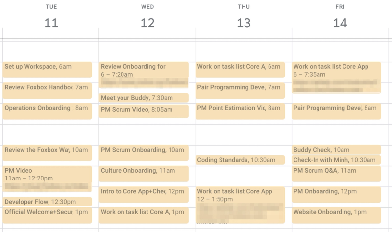 So, when we put together the calendar, we try not to make any assumptions on their exact knowledge. If we assume, then the new hire might be too afraid to ask simple questions and reveal their lack of knowledge on a topic that everyone assumed they know.