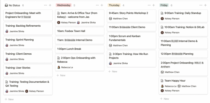 In Notion, we create a general onboarding document for each role type, but we also create a new onboarding document for each person. That will dictate the calendar invites being sent out.